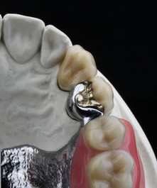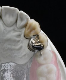 Kombinierter ZahnersatzWie es der Name schon verrät, werden hier festsitzender und herausnehmbarer Zahnersatz miteinander kombiniert. Dabei stellt der festsitzende Zahnersatz über ein Verbindungselement die Verankerung mit dem herausnehmbaren Zahnersatz her. Verbindungselemente sind Geschiebe, Riegel, Stege und Teleskope . Diese Art der Verbingungselemente muss der Zahntechniker individuell herstellen oder verwendet ein Halbfertig-/Fertigteil, welches in die Prothese eingearbeitet werden muss.